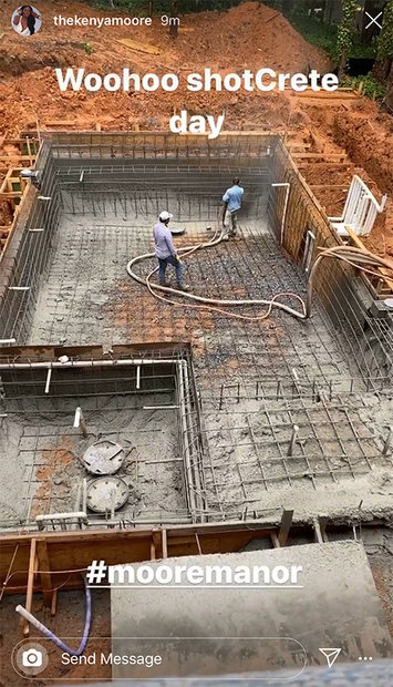 Last August, Kenya Moore posted a snap from a splashy project that was in the works at her storied Atlanta home, Moore Manor. "Woo hoo shotCrete day," she wrote, to caption a shot of workers building her in-ground pool. By November, the twirl queen had announced that the pool was "just days away" from completion. And on the April 11 episode of The Real Housewives of Atlanta, viewers got to check out the finished project.